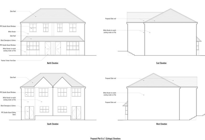 Sawkings Architects were appointed for the conversion & extension of a Public House into 3 No. dwellings, conversion & extension of outbuilding into 1 No. dwelling, erection of a two story Lodge at rear and erection of 2 No. semi-detached dwellings.
